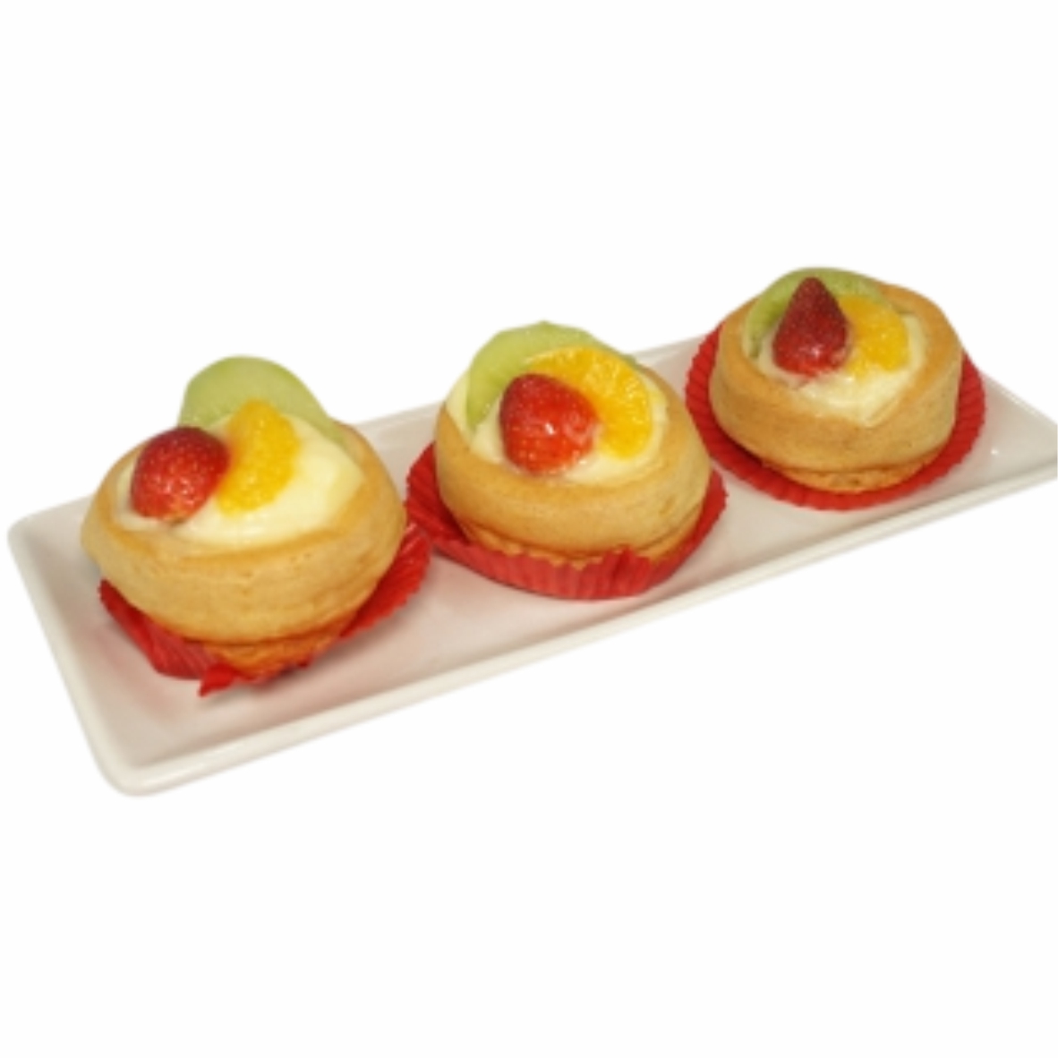 Sus Buah adalah choux pastry lembut yang diisi krim lembut manis dan dipadukan dengan buah segar pilihan, menghasilkan perpaduan rasa manis, creamy, dan segar yang seimbang. Tekstur kulit sus yang ringan berpadu sempurna dengan isian krim dan potongan buah, menciptakan sensasi dessert yang menyegarkan dan tidak enek.