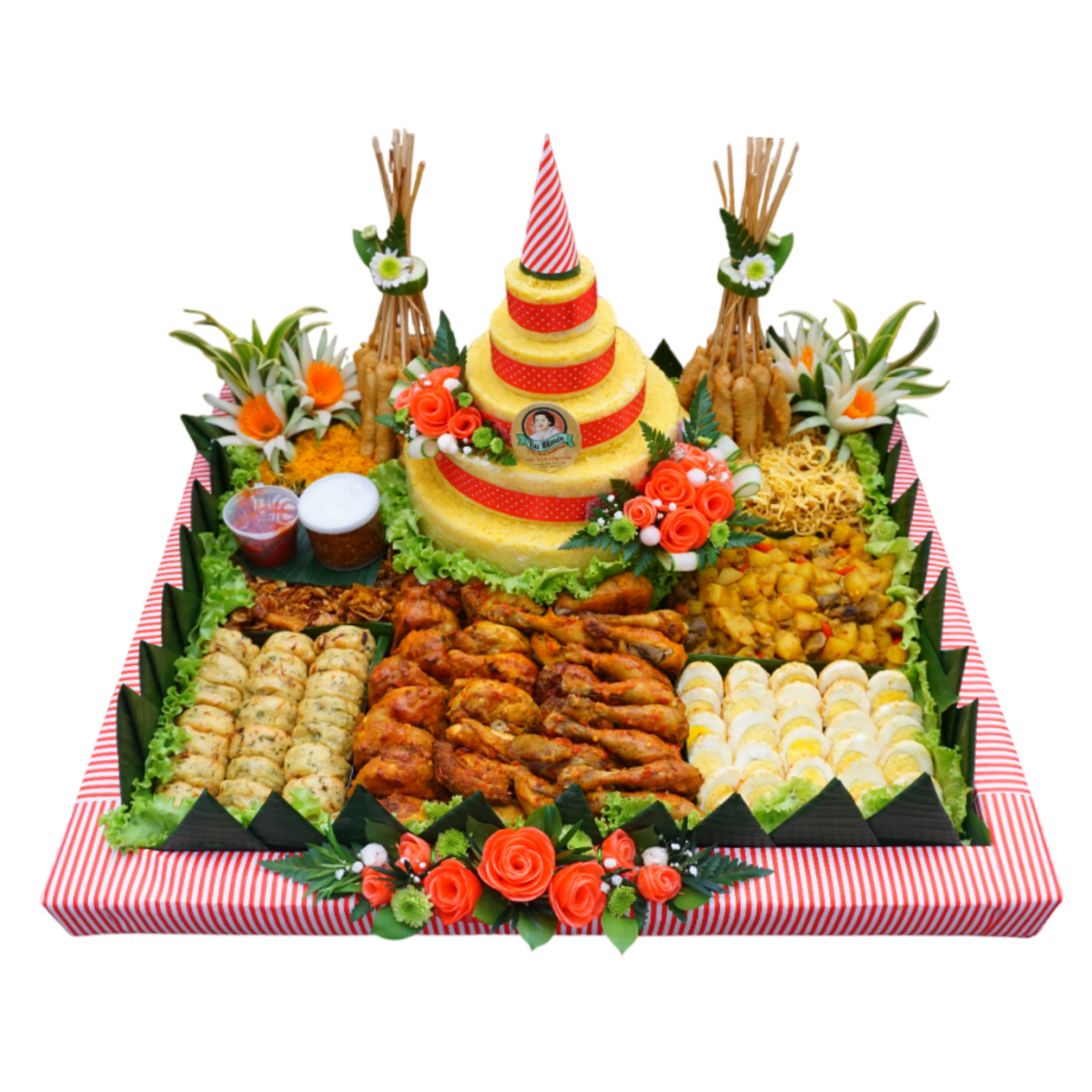 Nasi Putih, Ayam Ingkung, Sayur, Sambal Bawang, Terik Tahu Tempe, Kering Kentang, Sambel Goreng Kentang, Mie Goreng + Telor Suwir + Bawang Goreng, Telor Rebus, Rempah Goreng, Tampah 50 cm, Piring, Sendok, Centong, Tissue.